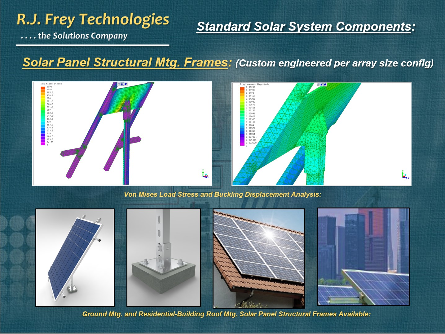 We also custom design each rigid PV array structural support frame per the panel array configuration requirements and conduct FEA structural analysis to ensure that load stresses are within safe levels.