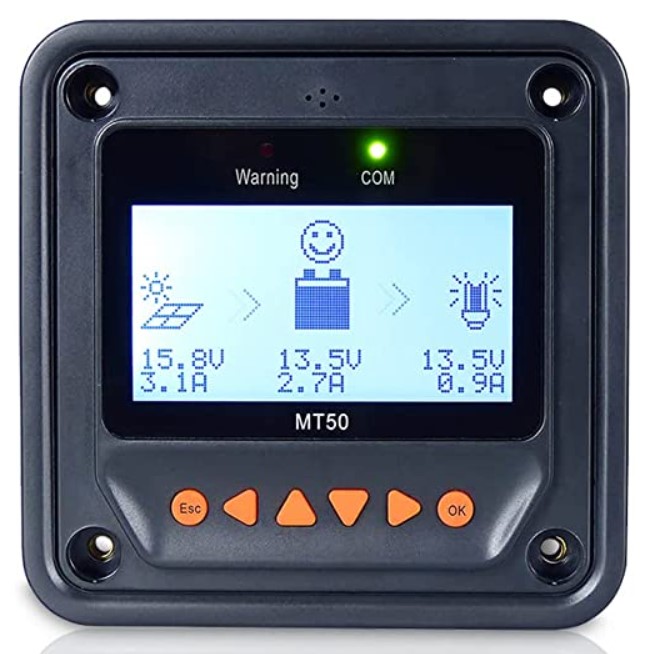 These charge controllers have advanced MPPT technology with an ultra-fast tracking speeds up to 99.5% with maximum DC/DC transfer efficiency as high as 98.7%. The Epever MT-50 remote control programming /monitoring interface module is included with each controller. Victron also offers a wide array of remote display type options for system data acquisition and parameter programming.