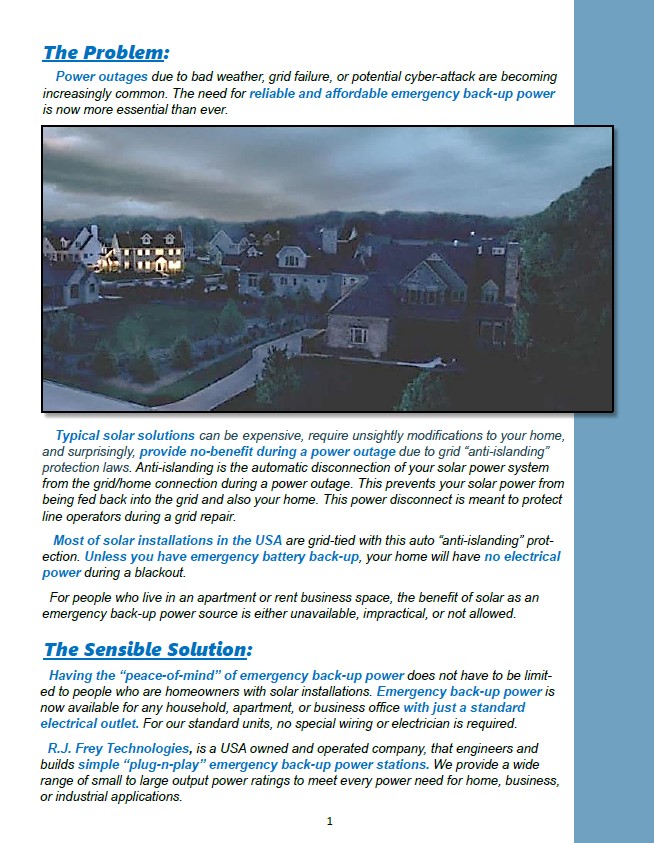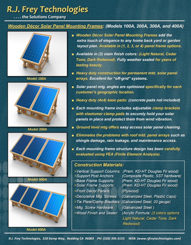 R.J. Frey Technologies, designs renewable energy systems for use in both the USA and internationally. See some of our system designs below: